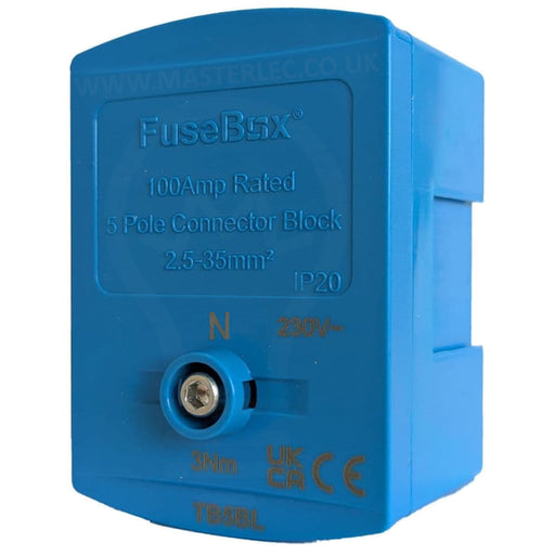 Fusebox 100A Single Pole Mains Connector Block Blue TB5BL