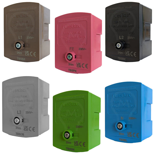 Fusebox 100A Single Pole Mains Connector Blocks Brown Black Grey Pink Blue Green