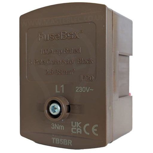 Fusebox 100A Single Pole Mains Connector Block Brown TB5BR