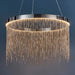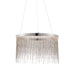 Contemporary LED ceiling pendant with a ring of LED lights diffused by a waterfall of hundreds of delicate chains. Perfect for modern interiors and plated in a polished chrome finish. Seemingly the pendant "floats", suspended from subtle clear cables that are height adjustable.