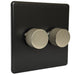 Matt Black Screwless Double 2 Gang Dimmer Switch with Brushed Steel / Stainless Steel Knurled Dimmer Knob