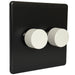 Matt Black Screwless Double 2 Gang Dimmer Switch with Matt White Knurled Dimmer Knob