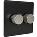 Matt Black Screwless Double 2 Gang Dimmer Switch with Polished Chrome Knurled Dimmer Knob