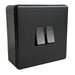 Matt Black Screwless Flatplate Double Light Switch with 32mm Black Surface Pattress Back Box
