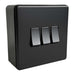 Matt Black Screwless Flatplate Triple Light Switch with 32mm Black Surface Pattress Back Box