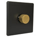 Matt Black Screwless Single 1 Gang Dimmer Switch with Satin Brass / Antique Gold Knurled Dimmer Knob