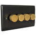 Matt Black 4 Gang Knurled Dimmer Switch with Satin Brass / Antique Gold Dimmer Knob