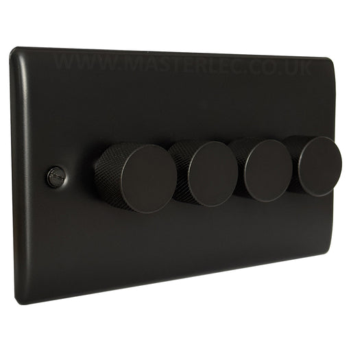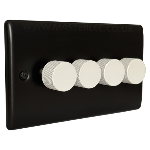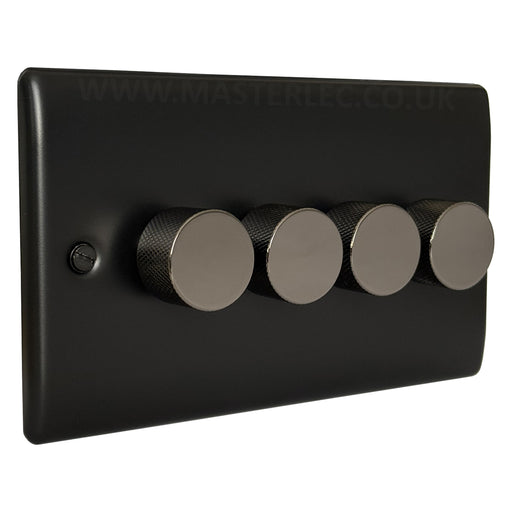 Matt Black 4 Gang Knurled Dimmer Switch with Matt Black Dimmer Knob