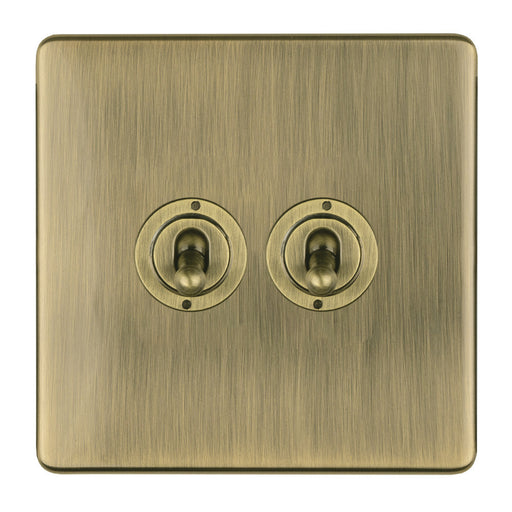 Antique Brass Screwless Double Toggle Light Switch Flat Concealed Plate CABT42