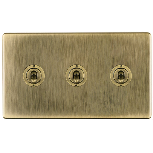 Antique Brass Screwless Triple Toggle Light Switch Flat Concealed Plate CABT43