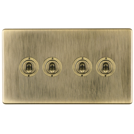 Antique Brass Screwless Quad Light Switch 10 Amp 2 Way Flat Concealed Plate CAB44