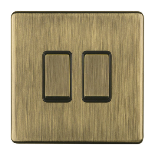 Antique Brass Screwless Double Light Switch 10 Amp 2 Way Flat Concealed Plate CAB42