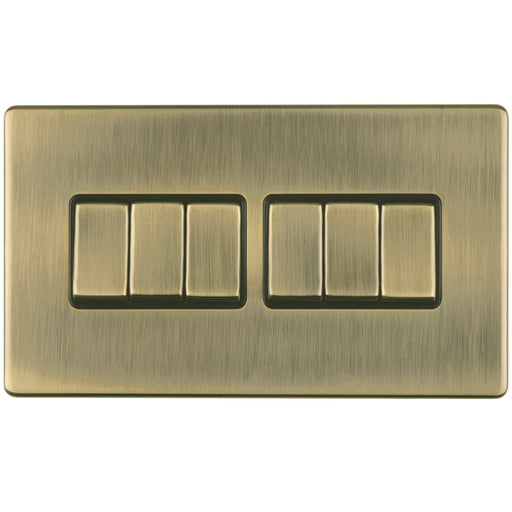 Antique Brass Screwless Six Gang Light Switch 10 Amp 2 Way Flat Concealed Plate CAB46