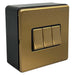 Antique Gold / Satin Brass Screwless 3 Gang Triple Light Switch & 32mm Black Surface Pattress Back Box