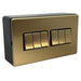 Antique Gold / Satin Brass Screwless 6 Gang Light Switch & 32mm Black Surface Pattress Back Box