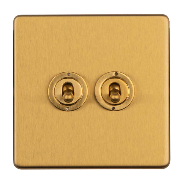 Antique Gold Screwless Double Toggle Light Switch Flat Concealed Plate Satin Brass CAGT42