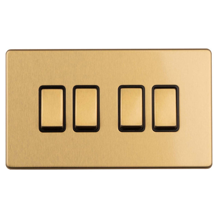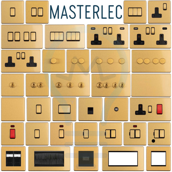 Antique Gold Screwless Switches and Sockets Flat Concealed Plate Satin Brass