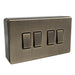 Antique Brass Screwless 4 Gang Quad Light Switch & 32mm Black Surface Pattress Back Box