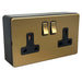 Antique Gold / Satin Brass Screwless 2 Gang Double Socket & 32mm Black Surface Pattress Back Box