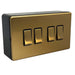 Antique Gold / Satin Brass Screwless 4 Gang Quad Light Switch & 32mm Black Surface Pattress Back Box