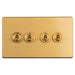 Antique Gold Screwless Quad Toggle Light Switch Flat Concealed Plate Satin Brass CAGT44