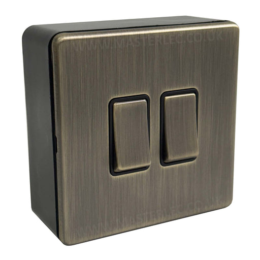 Antique Brass Screwless 2 Gang Double Light Switch & 32mm Black Surface Pattress Back Box