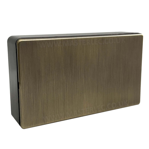 Antique Brass Screwless Double Blanking Plate & 32mm Black Surface Pattress Back Box
