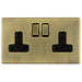 Antique Brass Screwless Switched Double Socket DP 13 Amp Flat Concealed Plate CAB22B