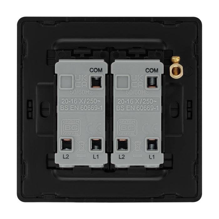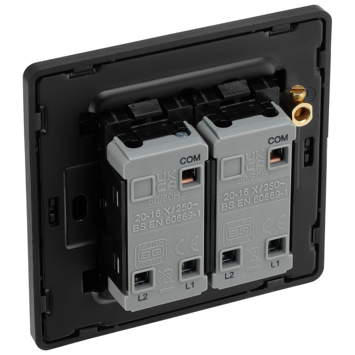 This Evolve 20A double light switch from BG will operate two lights in a room. The 2 way switch lets a second switch be added to the circuit, allowing the customer to operate the same lights from another location, e.g. either side of a room, or top and bottom of the stairs. The low profile edge-to-edge rockers clip in to place once the base is installed for a screwless appearance, with a large touch surface for easy operation. Installation is fast and secure with clearly labelled captive backed out terminal screws. The switch is certified to BS60669-1 standards, and comes with a 25-year guarantee for total peace of mind.