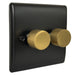 Matt Black 2 Gang Knurled Dimmer Switch with Satin Brass / Antique Gold Dimmer Knob